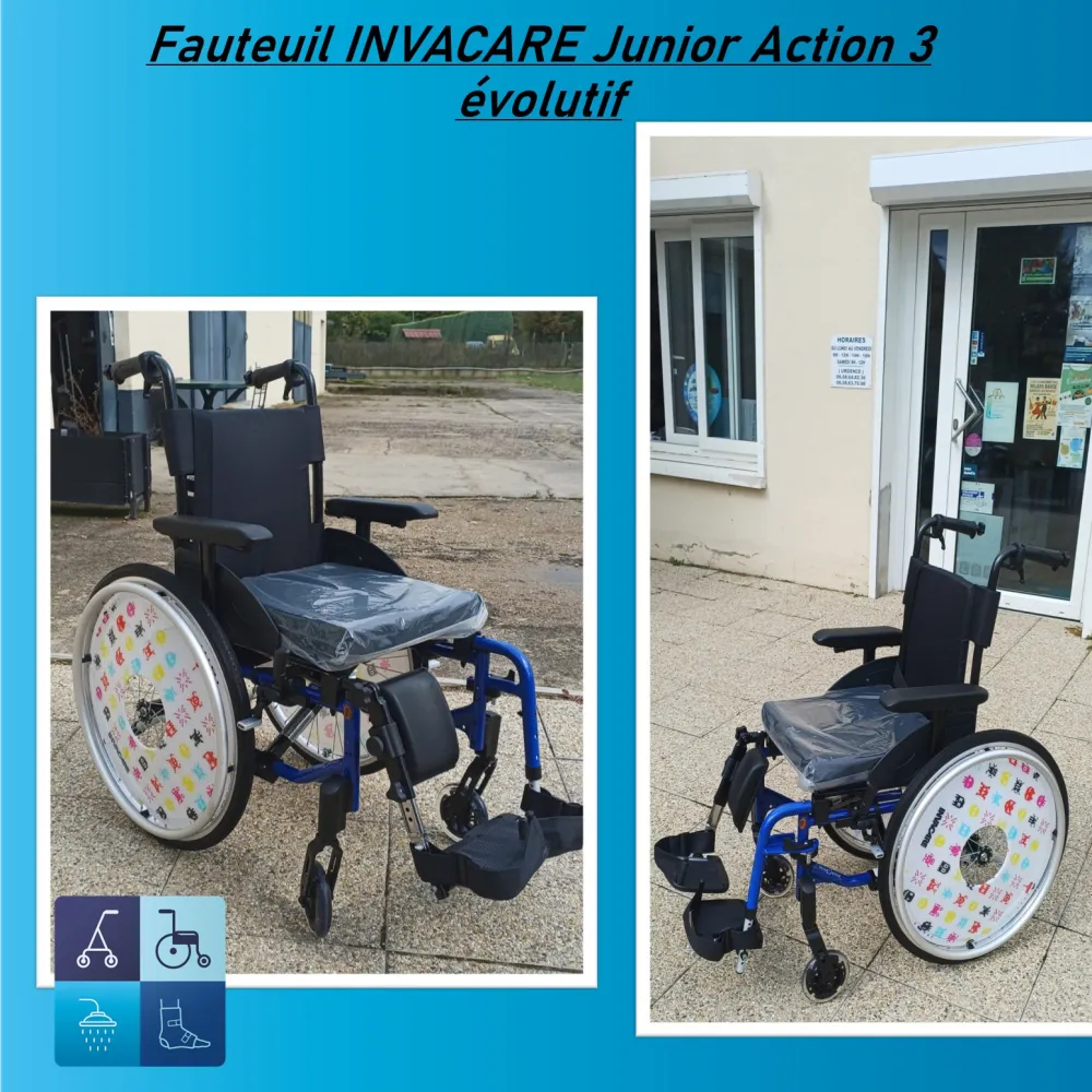 EGLV Médical revendeur de matériel médical à Balbigny, vous propose l'achat de fauteuil roulant INVACARE Junior Action 3 évolutif à Saint Germain Laval.